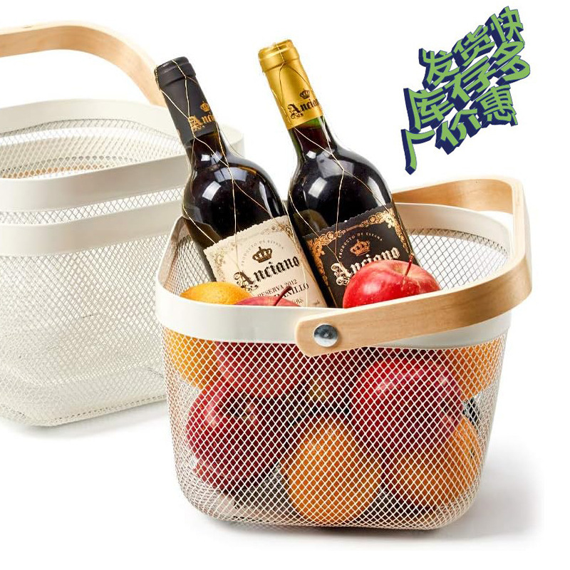 シンプルな家庭用鉄製収納バスケットイン多機能果物と野菜の収納バスケットピクニックフルーツポータブルバスケット