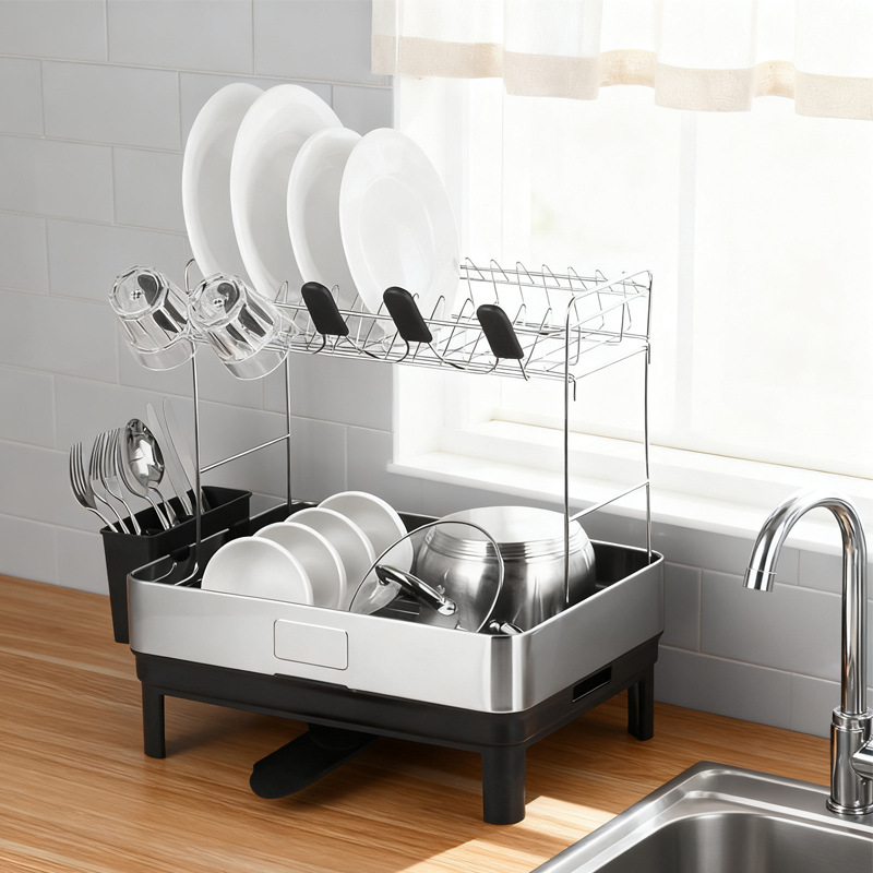 ステンレス製キッチンディッシュラック収納ラック二層ディッシュ収納ラック高価値家庭用ディッシュラック