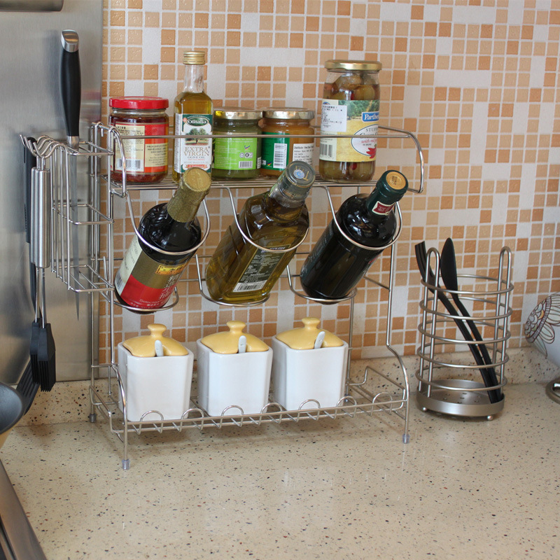 キッチン多機能スパイス収納ラック 304 ステンレス鋼カウンタートップ油塩ソース酢ラック 2 層スパイスラック収納