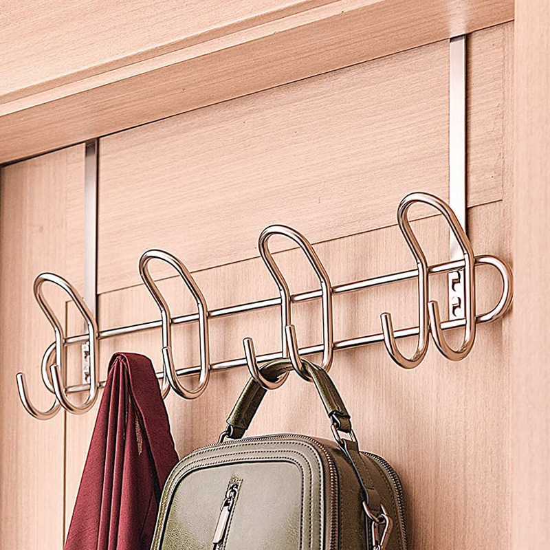寝室のドアの後ろのフックアーティファクト、ステンレス製のドアの後ろの洋服フック、パンチングなし、多機能ドア収納棚