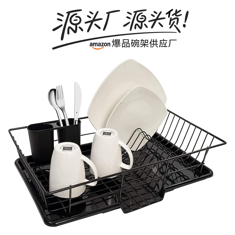 キッチンディッシュラック、水切りラック、鉄線ディッシュラック、軽量、ヨーロッパとアメリカンスタイル、取り外し可能なカトラリーボックス、水切りが速い