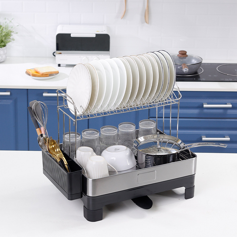 台所の物置棚に食器棚の水切り皿を置くステンレス家庭用食器皿収納304水切り食器棚現物代発