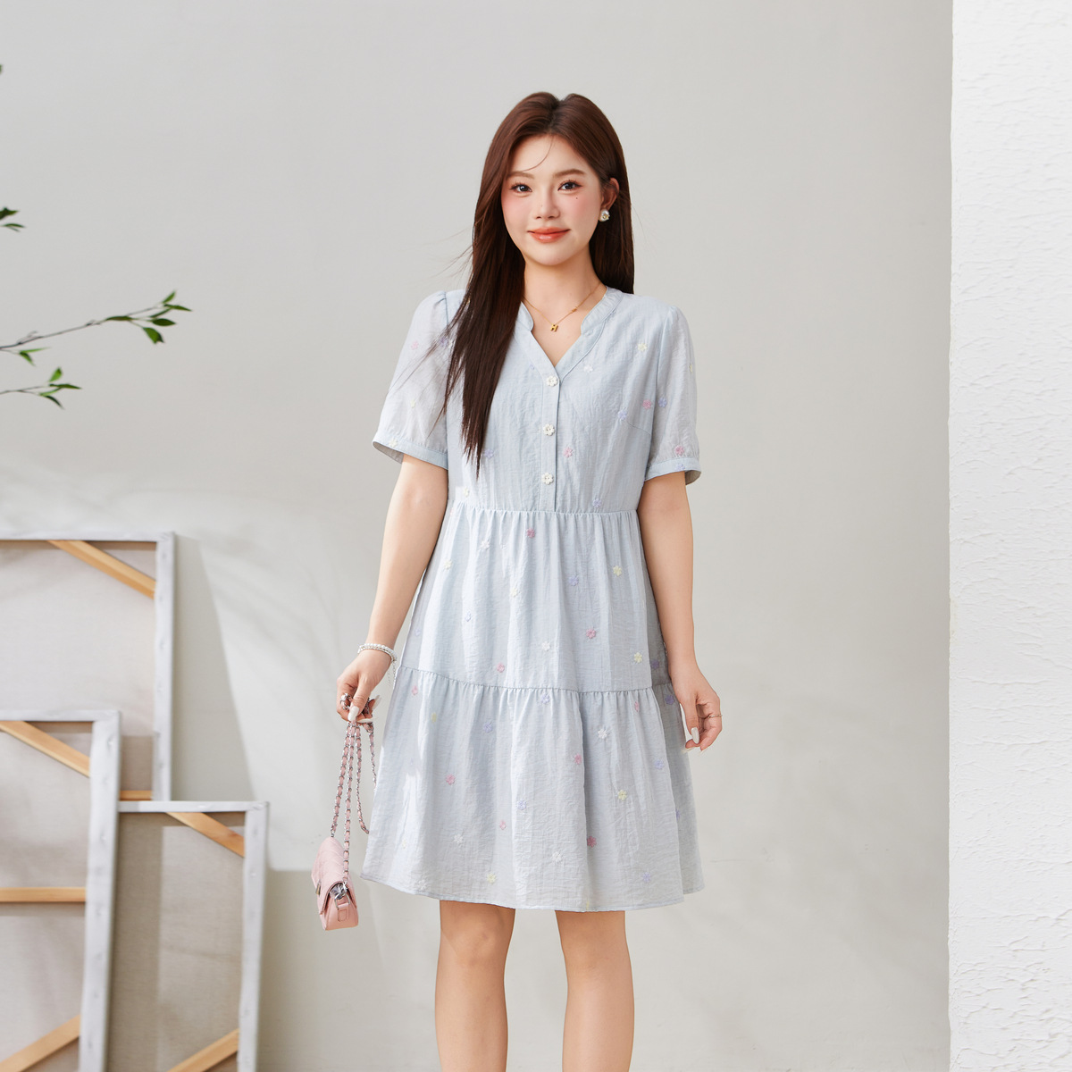 Caiduobao プラスサイズの女性のファット mm2025 夏の新しい V ネックフレンチ刺繍ドレス EXQ5567