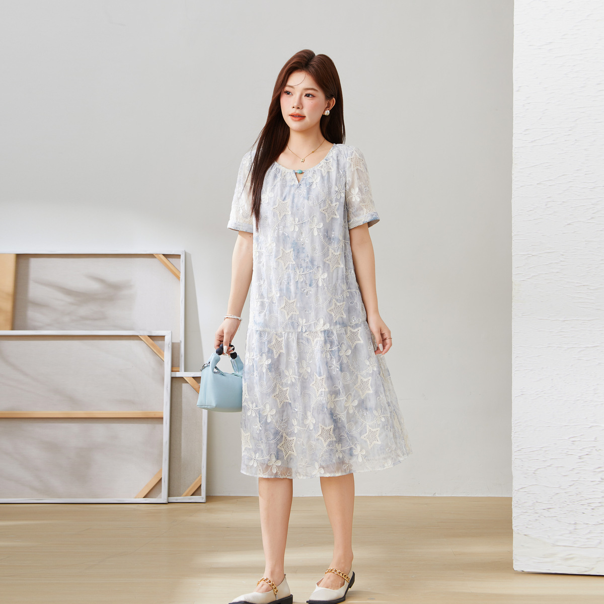 Caiduobao プラスサイズの女性のファット mm2025 夏の新しい星空中空刺繍ストラップドレス EXQ5552