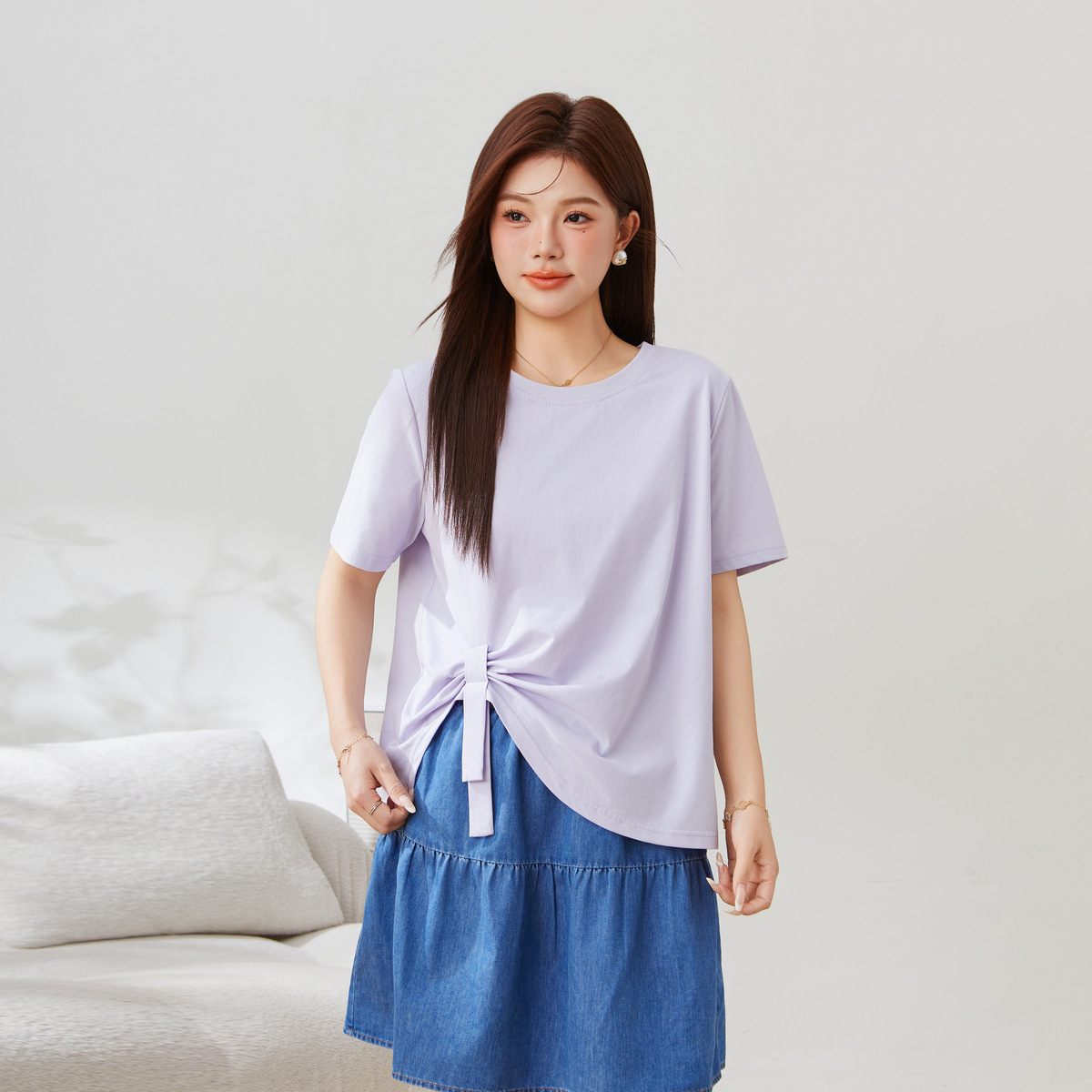 Caiduobao プラスサイズの女性のファット mm2025 夏の新しい不規則なリボンデザインスリム T シャツ EXZ5369