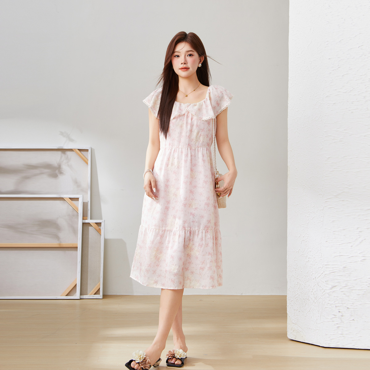 Caiduobao プラスサイズの女性のファット mm2025 夏の新しいスタイルのベビードール襟痩身花柄ドレス EXQ5350