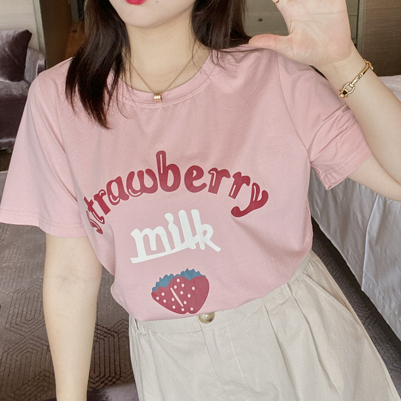 ジェーンウェイの大きいサイズの女装の太った妹の2021年の夏服の新型の丸首の果物のプリントのtシャツxz21023