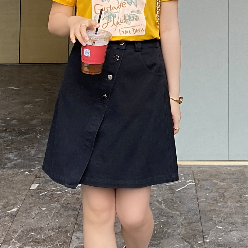 ジェーンウェイの大きいサイズの女装の太った妹の2021年の夏服の新型のa字の不規則なデニムの半身のスカートのbq0222