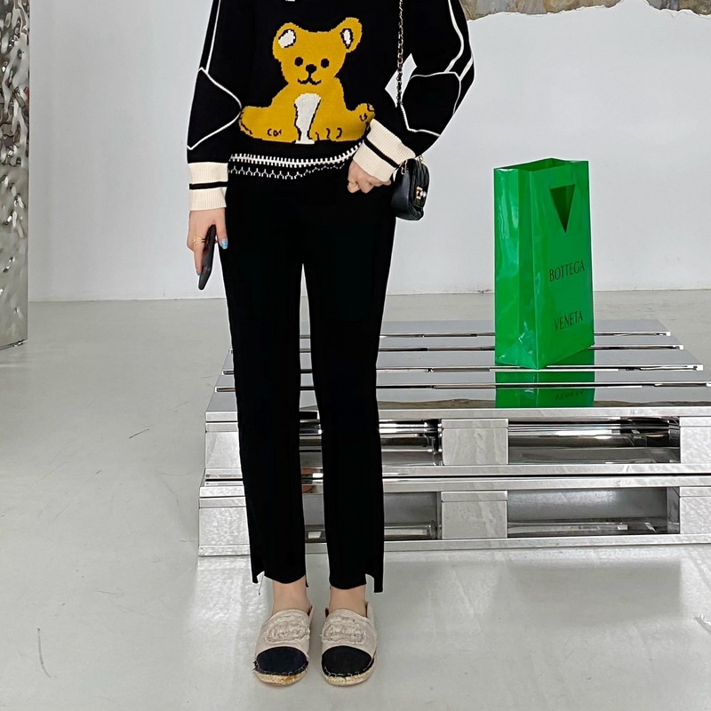 採多宝加肥プラスサイズ女装太った妹2021秋装新高腰スリット鉛筆カジュアルパンツ