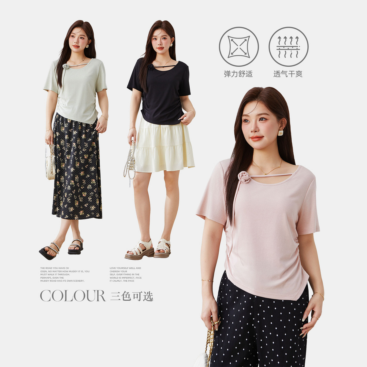 Caiduobao プラスサイズの女性のファット mm2025 夏の新しいローズ装飾ウエスト痩身トップ EXZ5287