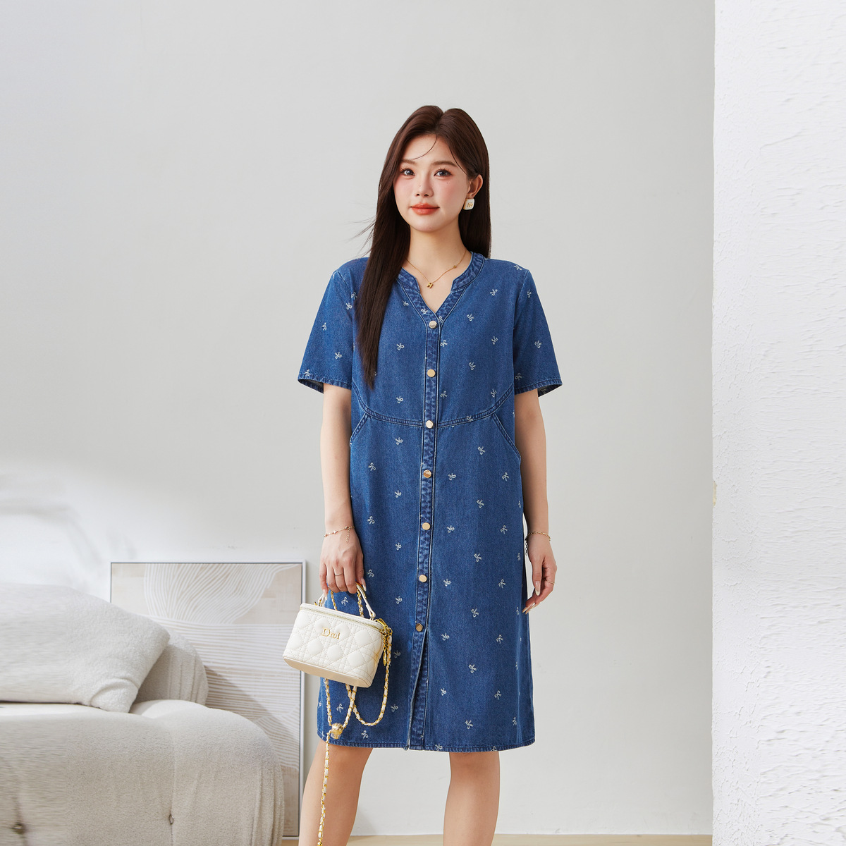 Caiduobao プラスサイズの女性のファット mm2025 夏の新しいカジュアルジャカードデニムドレス EXQ5196
