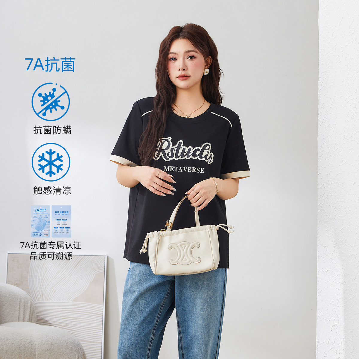 Caiduobao プラスサイズの女性のファット mm2025 夏の新シンプルなレタープリントコントラストカラー多用途 Tシャツ EXZ3082