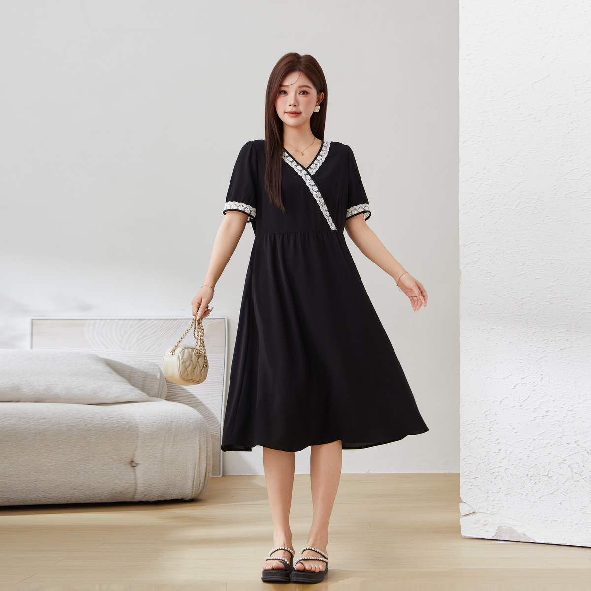 Caiduobao プラスサイズの女性のファット mm2025 夏の新しい V ネックレース痩身ドレス EXQ5213