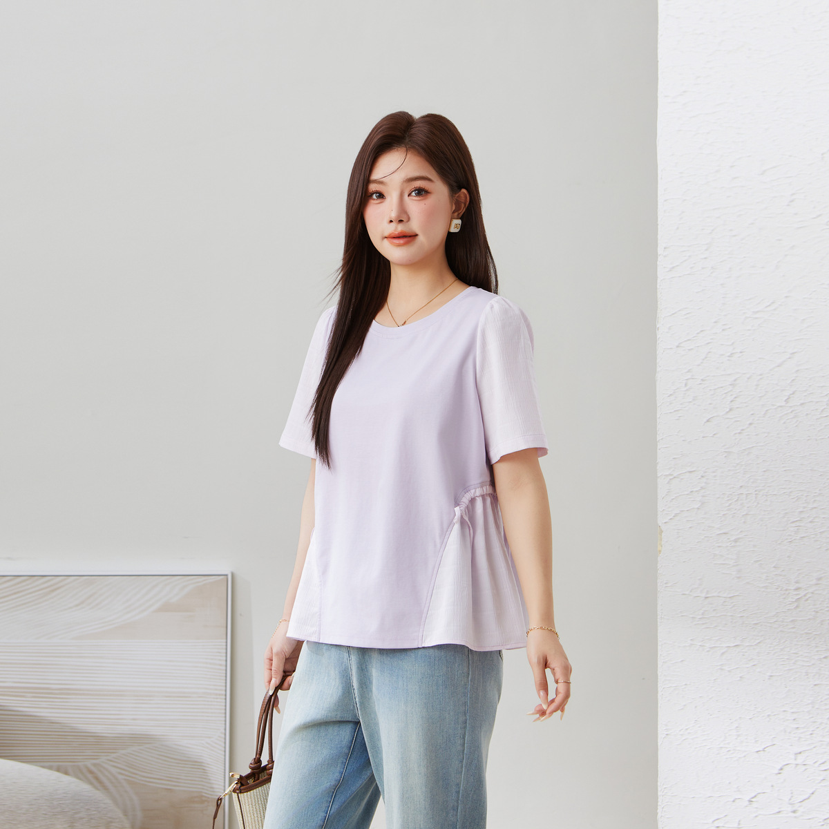 Caiduobao プラスサイズの女性のファット mm2025 夏の新しいスタイルの細かいステッチプリーツお腹カバーシャツ EXZ5139