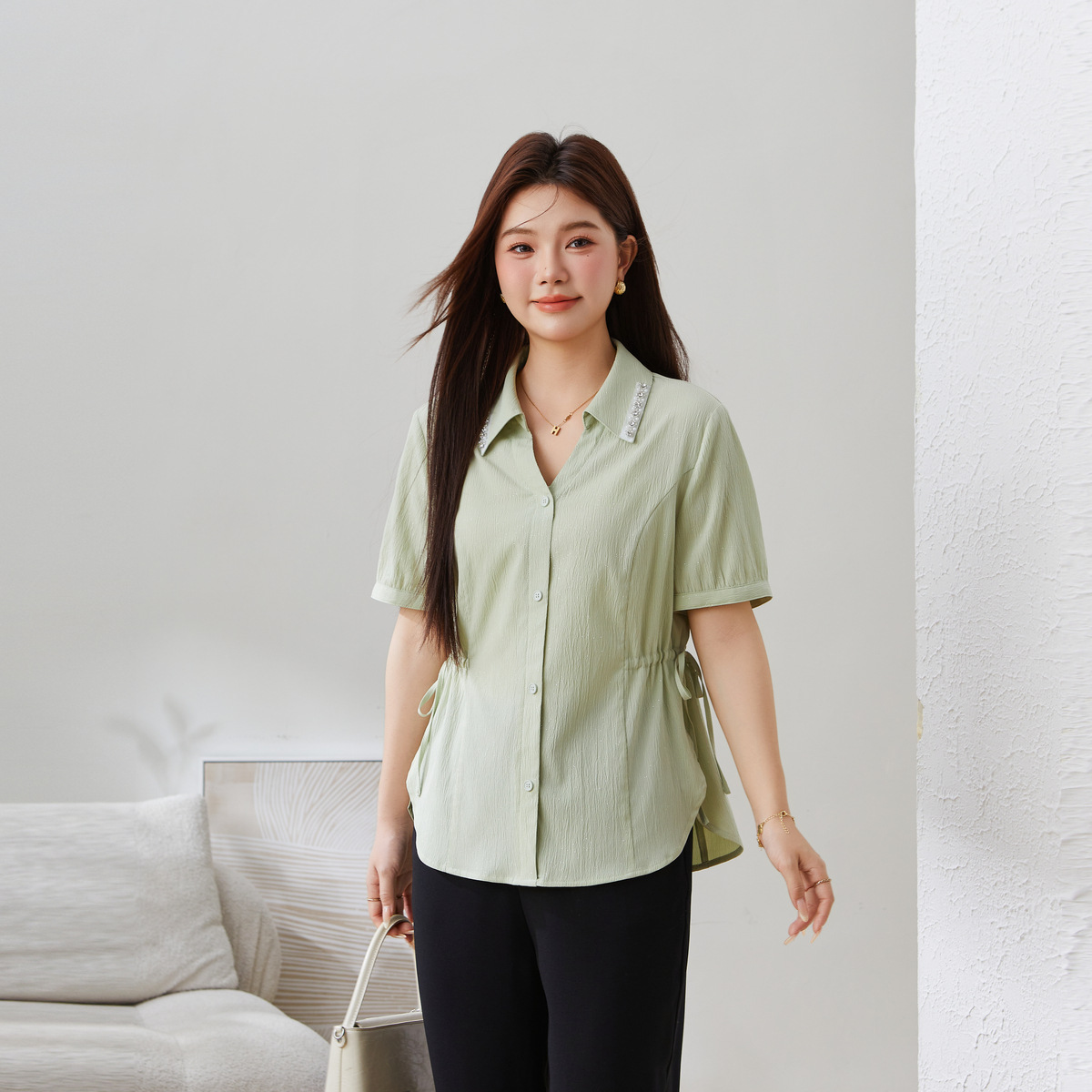 Caiduobao プラスサイズの女性のファット mm2025 夏の新しいフレンチプレス折り襟年齢を減らす気質シャツ EXA5318