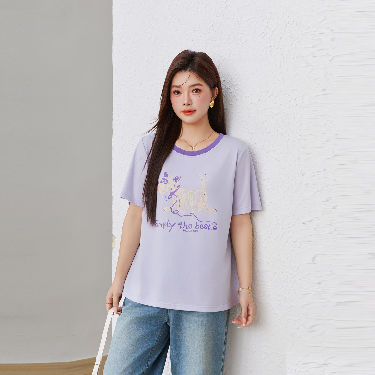 Caiduobao プラスサイズの女性のファット mm2025 夏の新リヨセル漫画子犬プリントトップ EXZ5200