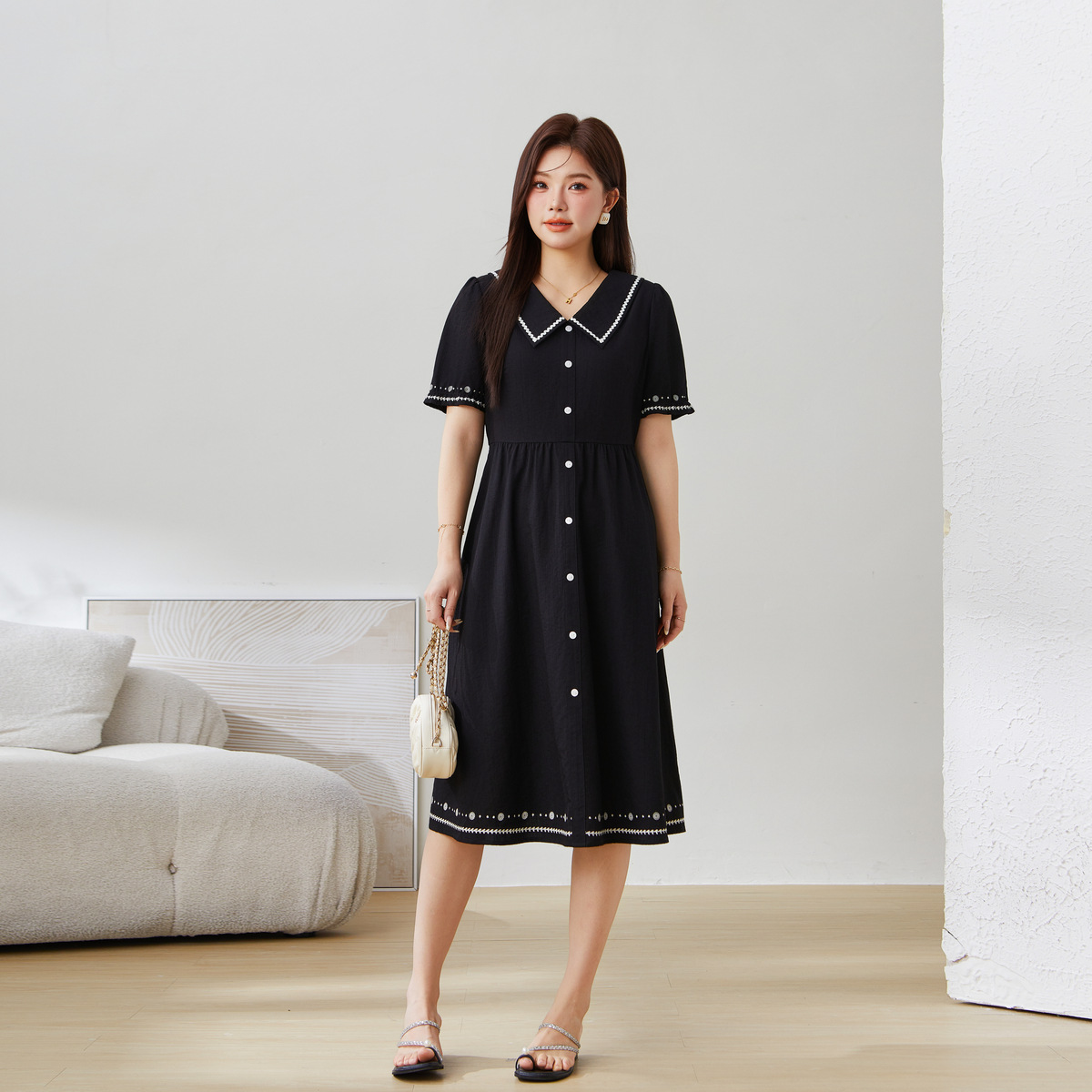 Caiduobao プラスサイズの女性のファット mm2025 夏の新しいフランスの重刺繍花柄ドレス EXQ5338