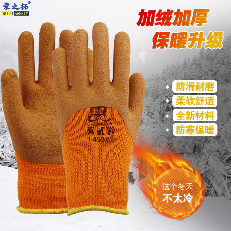 純正品にベルベットをつけて毛輪手袋を厚くして保温発泡ラテックスを保護して、耐久性のある滑り止め工事現場のプラスチックディッピングをしている