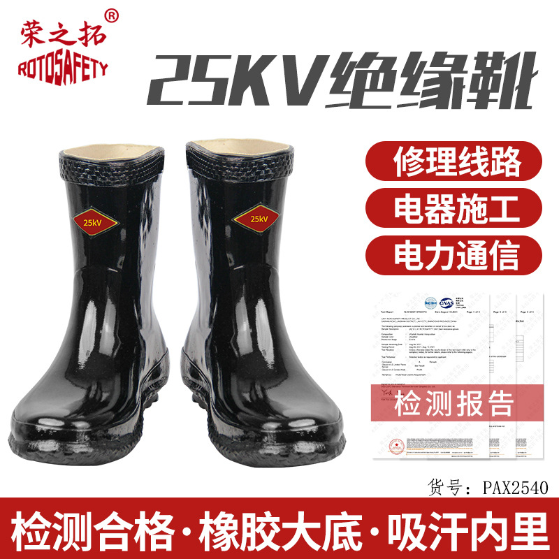 毎日平安25kv絶縁靴中筒高耐摩耗性滑り止め電気靴防電ゴム雨靴絶縁靴