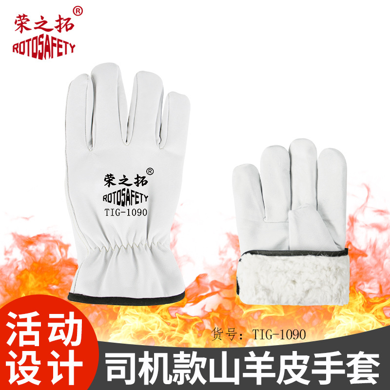 栄之拓羊皮防護手袋ベルベット保温耐摩耗断熱やけど防止柔らかい溶接工アルゴンアーク溶接男