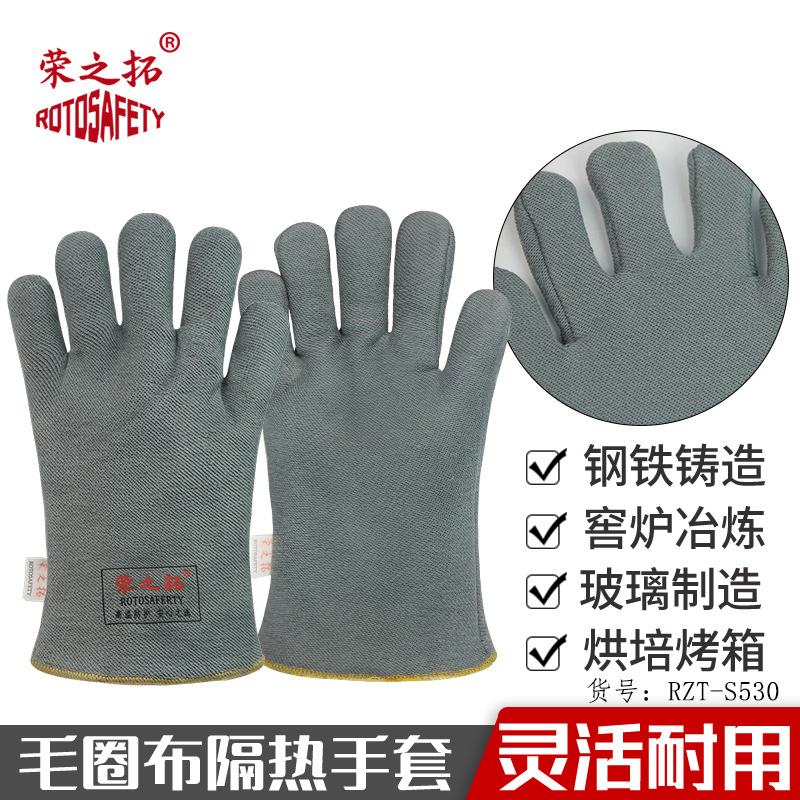 栄之拓2032625耐高温250オーブン防護手袋断熱耐摩耗滑り止め工業労働保毛輪綿