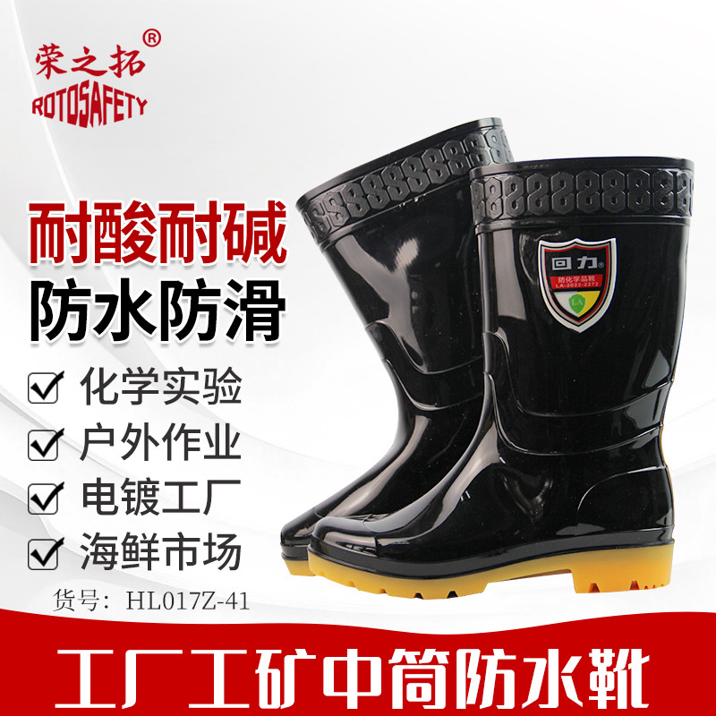 回力耐酸アルカリ雨靴男性工事現場耐磨耗靴防水筒カバー靴ゴム靴防化学雨靴男
