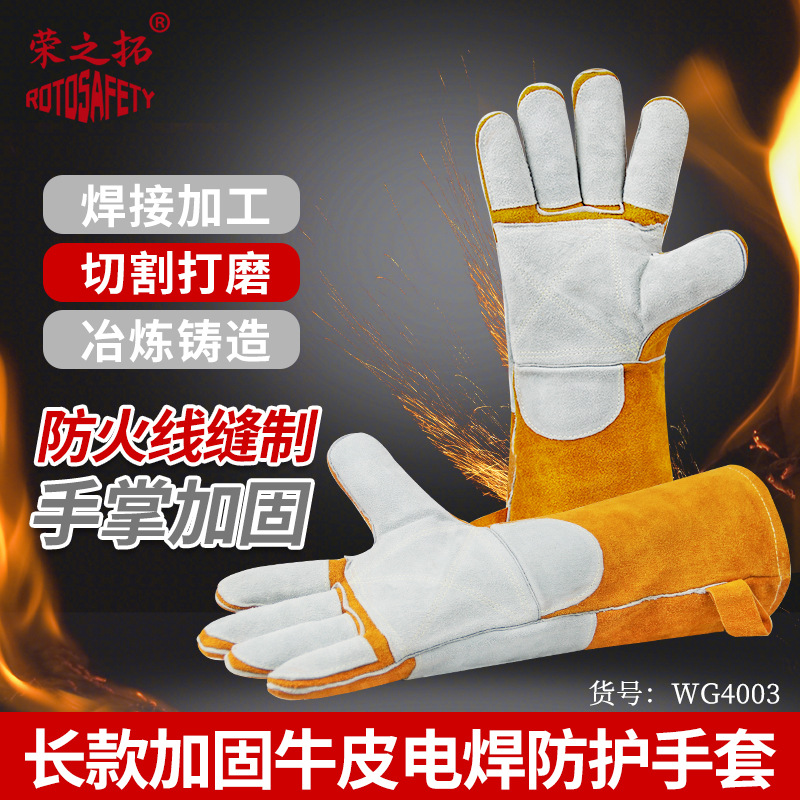 栄之拓電気溶接手袋溶接工用牛革ソフト断熱防熱耐高温労働保護耐摩耗作業ロングタイプ男