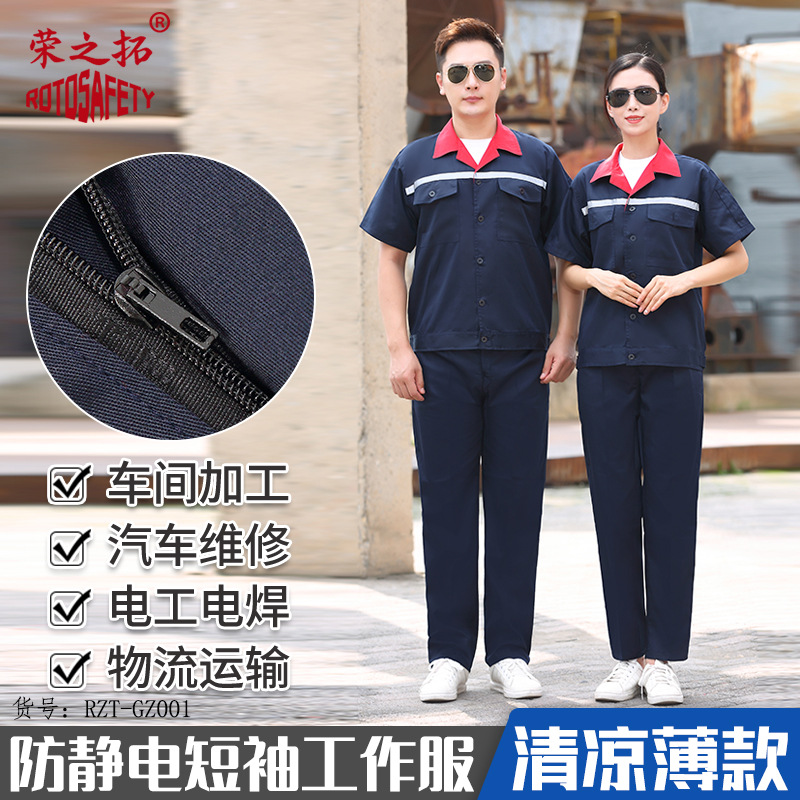半袖作業服セット男性夏工場工場服上着工事現場工事服自動車修理服労働保険服