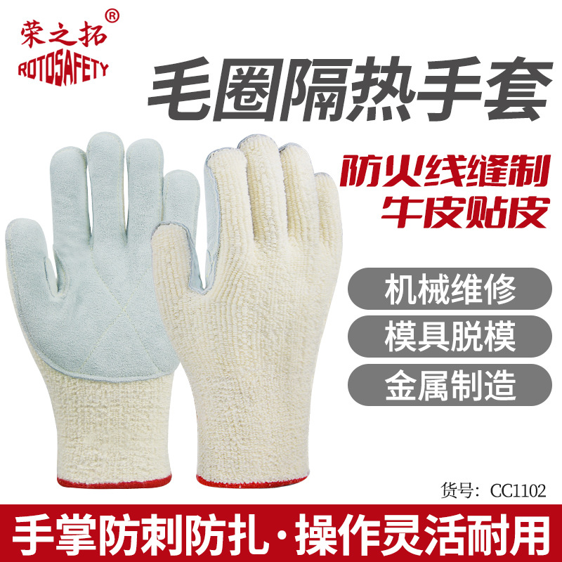 栄之拓棉毛輪貼り断熱手袋250度耐高温五本指柔軟家庭用労働保険
