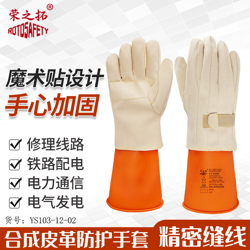 絶縁手袋外付け保護手袋帯電作業感電防止手袋耐高圧皮革手袋電気防護