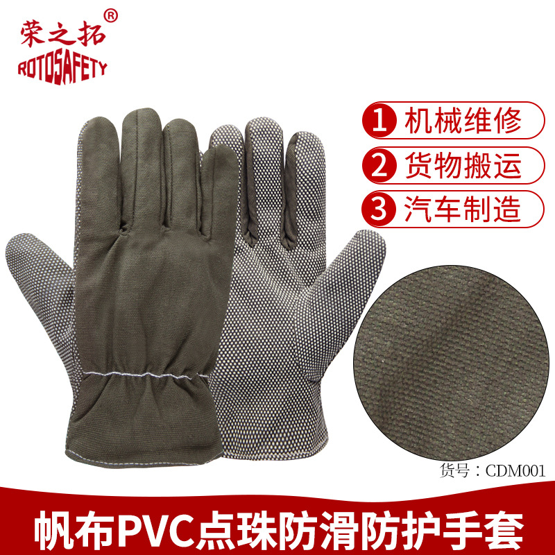 栄之拓キャンバスビーズ手袋単層滴塑綿布手袋滑り止め耐摩耗油田労働保護作業手袋