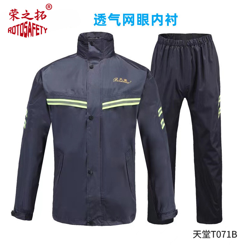 天国レインコートレインパンツセットN211-7AX電気自動車オートバイ二重厚手男女成人分体ポンチョ