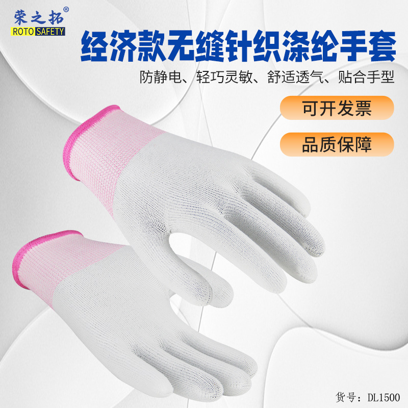 13針の白いナイロン手袋クリーン工場の静電気防止ゴムを塗っていない労働保護電子工場のニット手袋の芯