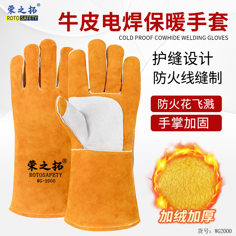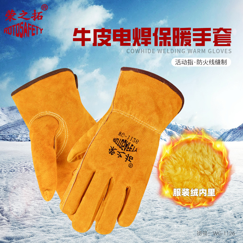 栄之拓電気溶接工専用手袋耐摩耗性柔らかい牛革厚い労働保護手袋ショートタイプのベルベット