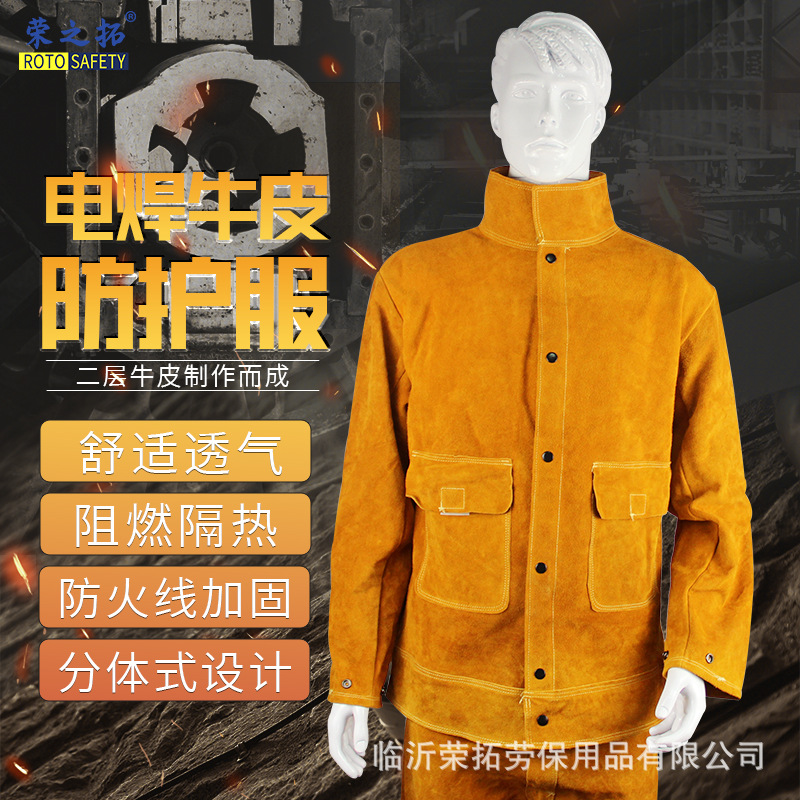 耐高温電気溶接防護服溶接工溶接服牛革断熱溶接防火花難燃防火作業服