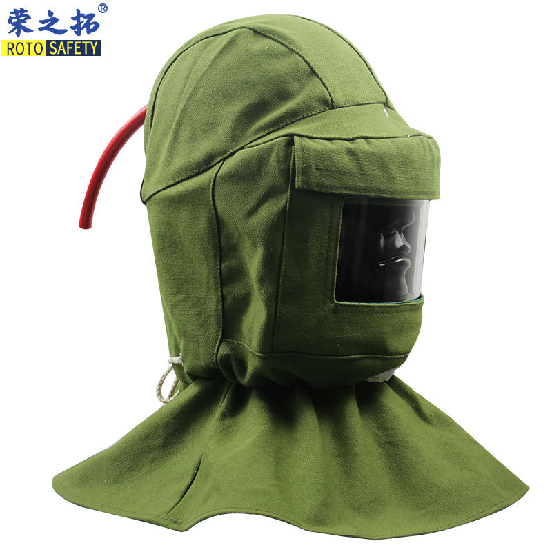 防砂帽緑帆布サンドブラスト帽防塵塗料工業粉塵全面カバー研磨防護肩掛け帽子マスク