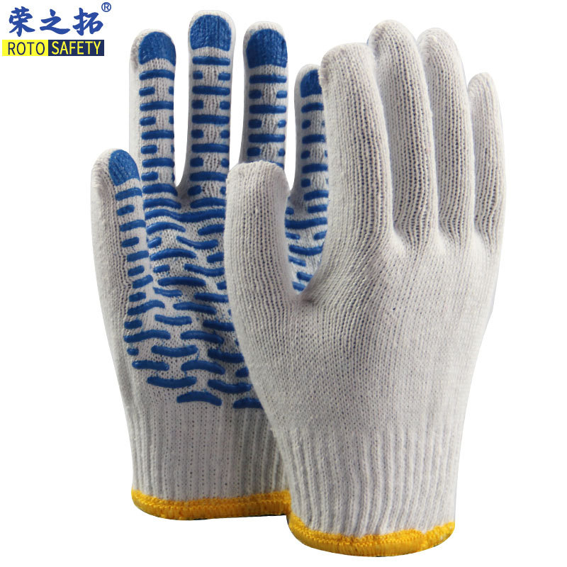 波紋点塑性線手袋pvc点珠ポリエステル綿滑り止め耐久性建築工事現場の仕事防護労働保護手袋