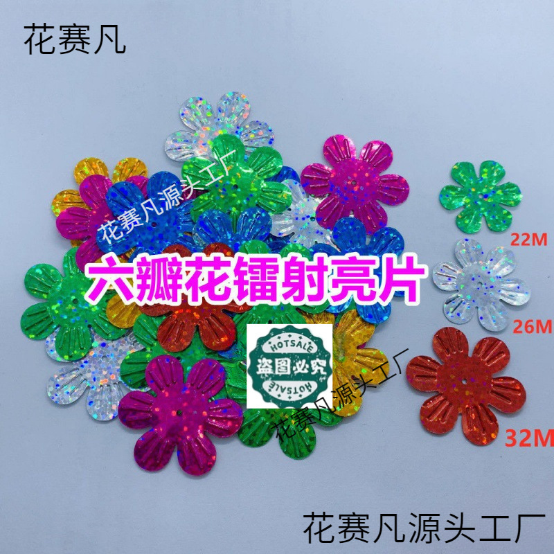 レーザー色の中穴六弁の花のスパンコールの玉片の22- 32mmの服装の靴の帽子のアクセサリーの手作りのdiyの部品