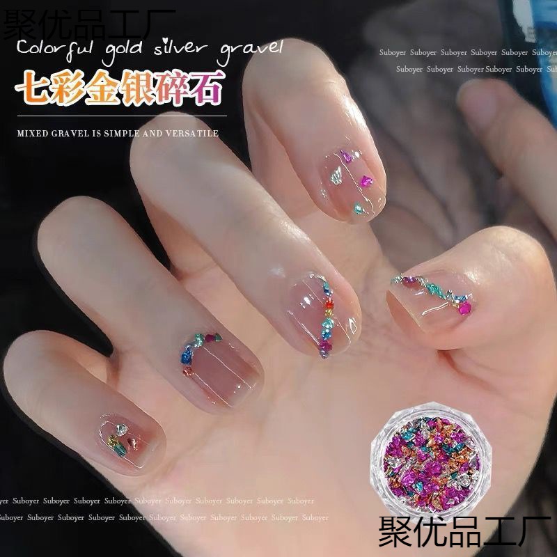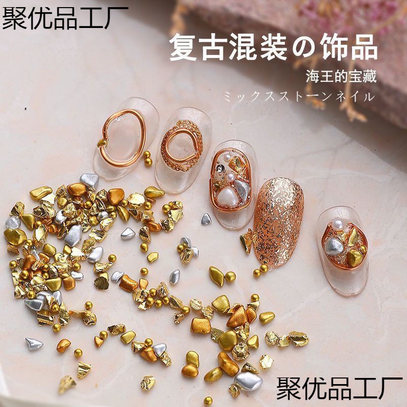 ネイルダイヤモンドカラフル不规则な砂利赤レトロ金属质感鉱石サイズミックス爪diy装饰