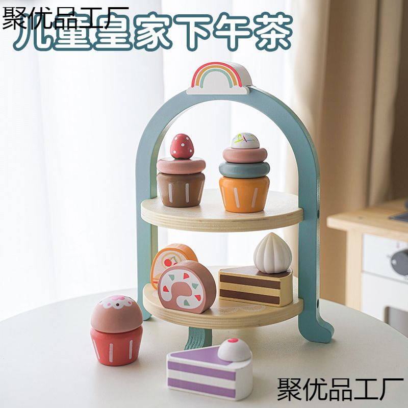 木の子供のままごとの赤ちゃんのおもちゃのお茶のお菓子のシミュレーションのケーキのデザートのコーヒーの休憩のおもちゃ