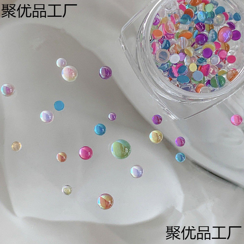 ネイルアート人魚珠高透珠幻彩極光ドリルアクセサリーキャンディー色水晶半円珠混装マカロンネイル