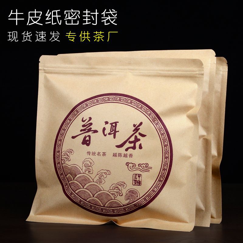 プーアル茶密封袋防湿アルミ箔自封袋クラフト紙茶葉包装保存茶袋357g餅茶収納袋