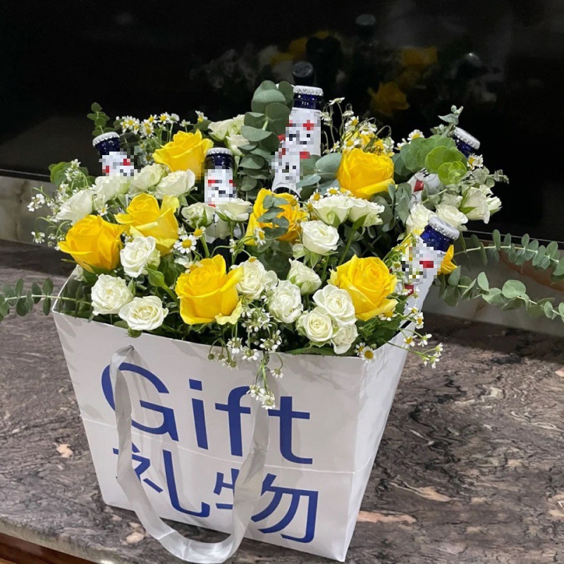 母の日ギフトバッグ紙袋花プレゼント正方形袋抱っこ袋手花芸包装ビール花束手提げ