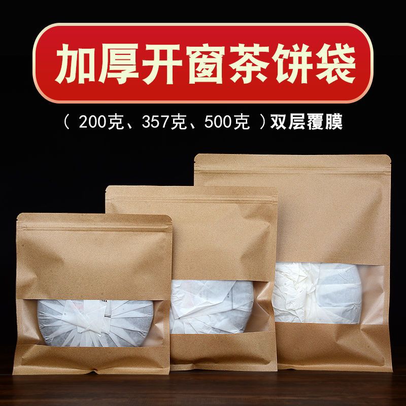 茶餅貯蔵袋窓開けクラフト紙茶葉包装袋357グラム200g 500g白茶プーアル密封袋