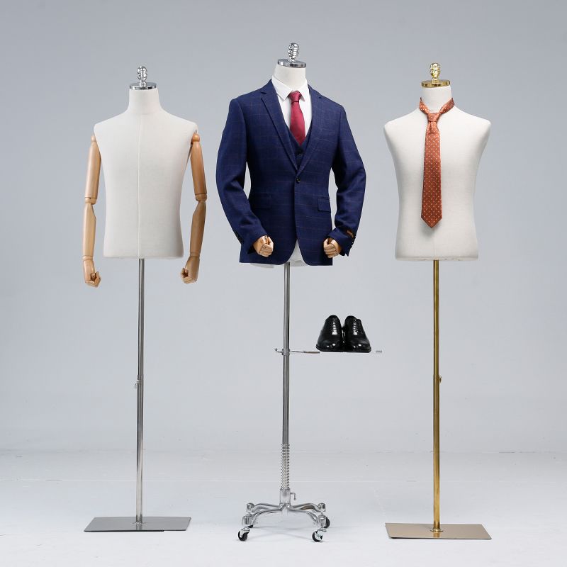 男性モデルの道具半身の韓国服店の洋服の服はモデルのショーウインドーの偽の人体の全身のモデルのスタンドを展示します。