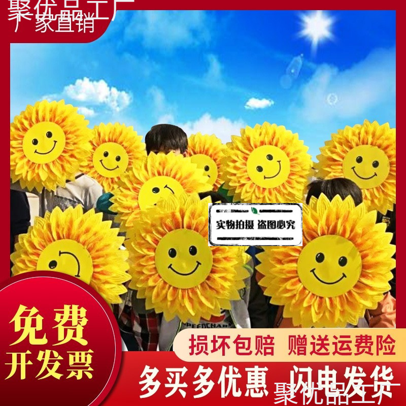 ヒマワリのダンスの道具は花の子供の運動会を持って入場します。