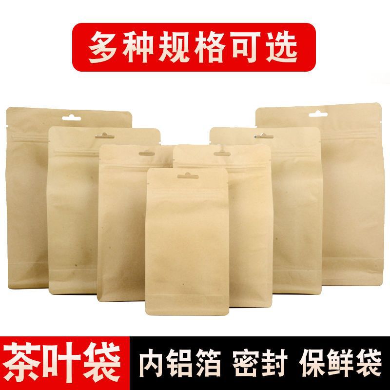 茶の包装袋クラフト紙アルミ箔チャック袋プーアル茶密封袋通用紅緑茶自封袋八辺封