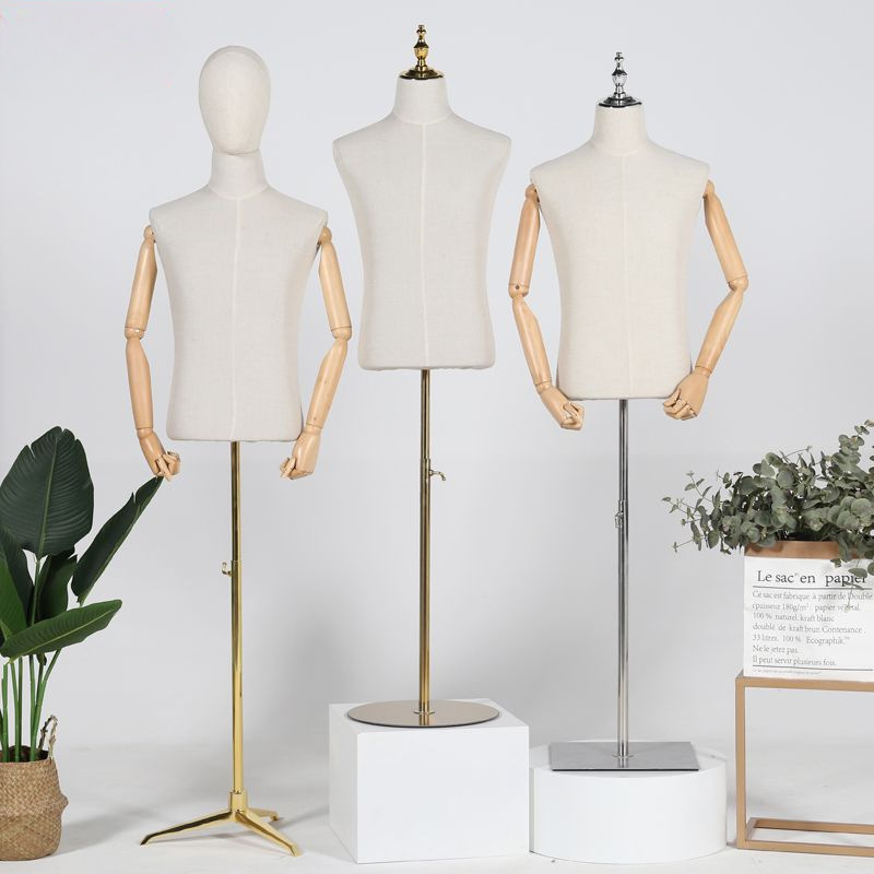 洋服店男性モデル道具半身全身人台洋服ドレス展示棚ダミー頭金色男性モデル棚