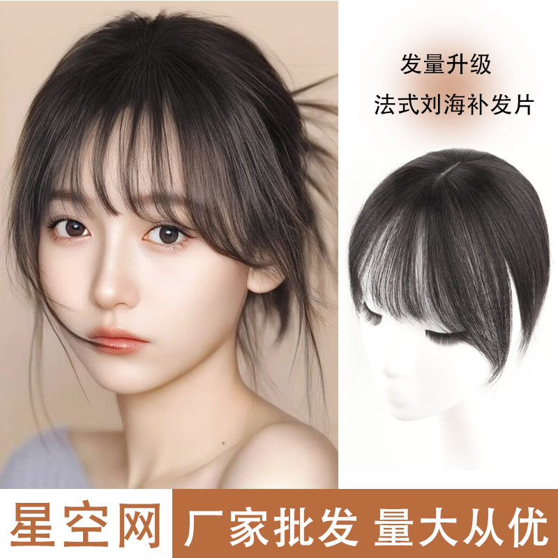 全真髪空気前髪かつら女性軽薄手織り前髪自然額見えない自然前髪かつら