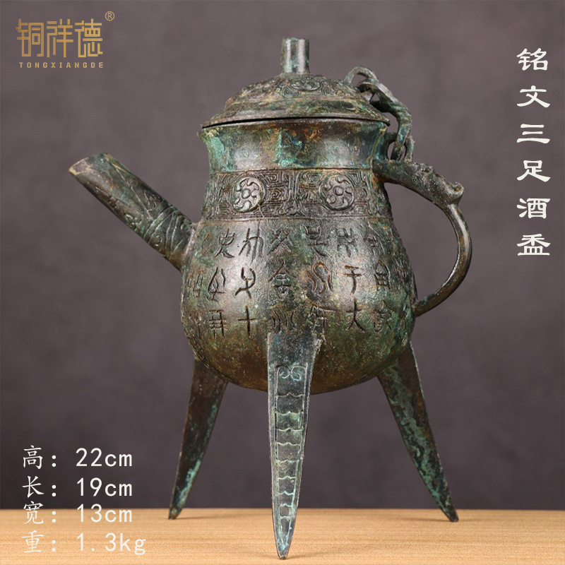 古青銅器銘文三足酒壺銅壺漢婚道具工芸品置物家庭装飾レトロ贈り物